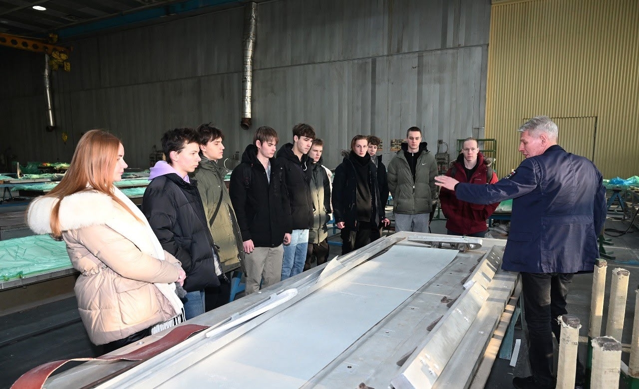 Участниками стали обучающиеся Института авиационных технологий и управления по направлению «Самолето- и вертолетостроение», а также студенты факультета информационных систем и технологий. Будущим технологам и программистам продемонстрировали цех полимерно-композитных материалов и рассказали об этапах изготовления изделий из композитов. Также студенты смогли посетить участок сборки панелей крыла самолета, площадку по изготовлению оргстекла и увидеть процесс изготовления интерьерных панелей и автоклавного формирования деталей под избыточным и вакуумным давлением. Особый интерес у ребят вызвали операции по пропитке стеклоткани и изготовлению резинотехнических изделий – манжет, профилей и деталей из пластмасс. Начальник цеха полимерно-композитных материалов провел экскурсию по участку тепло- и звукоизоляции, где изготавливаются и утепляются маты, шьются чехлы и осуществляется обшивка трубопроводов самолёта.